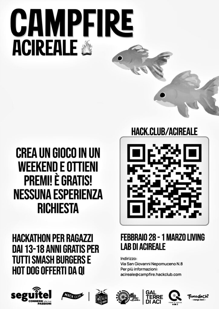 Dal 28 febbraio al 1° marzo, Acireale entra nella mappa mondiale della programmazione giovanile. Sarà l’unica sede siciliana di Campfire, la più grande maratona di sviluppo videoludico al mondo riservata a studenti delle scuole medie e superiori, organizzata in contemporanea in oltre duecento città su sei continenti sotto l’egida di Hack Club, organizzazione no-profit statunitense fondata nel 2015.